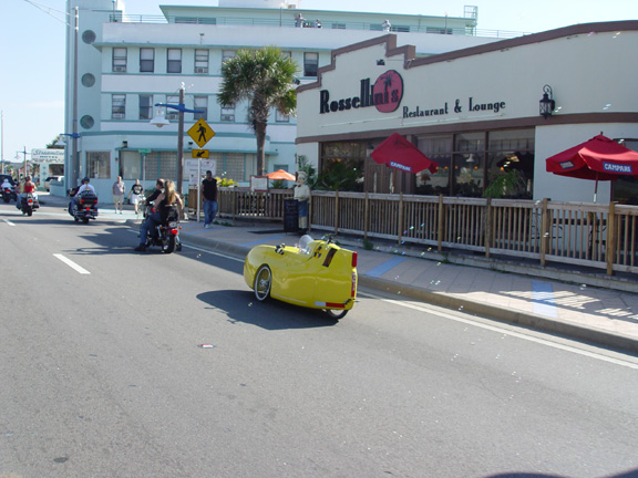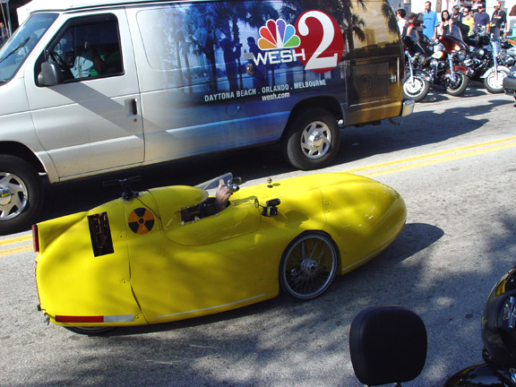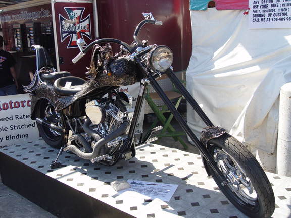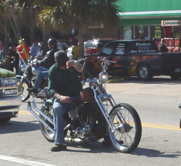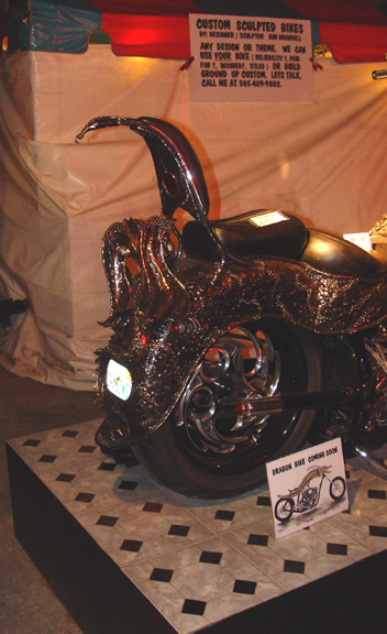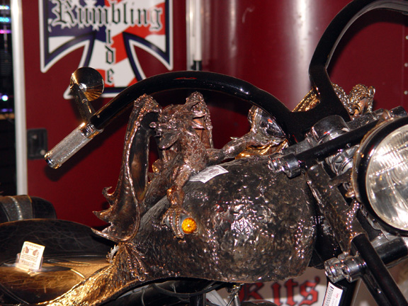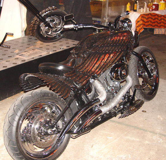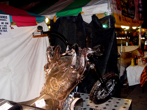 The Dragon and Eagle bikes are both completely made of hand-beaten copper by an artist, the wires even run through the arms of the dragons! While the picture of the guy on the bike by himself may not seem that interesting . . . if you look closely he's actually adjusting the bike with a screwdriver right on the street at a stoplight. He had the screwdriver in his back pocket. :)